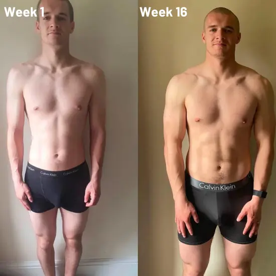 “In just 16 weeks I dropped fat and built more muscle than I ever thought possible. My drive is back, my energy is up, and my confidence skyrocketed.” – Ethan S.
